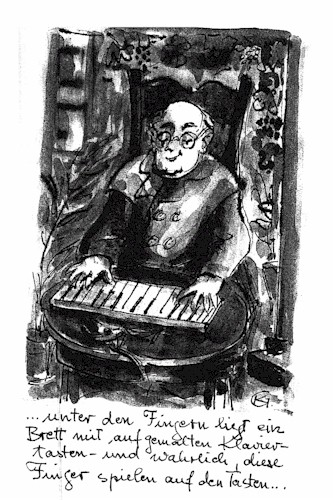 Gläsern blickt er auf seine fleischigen Hände, nein